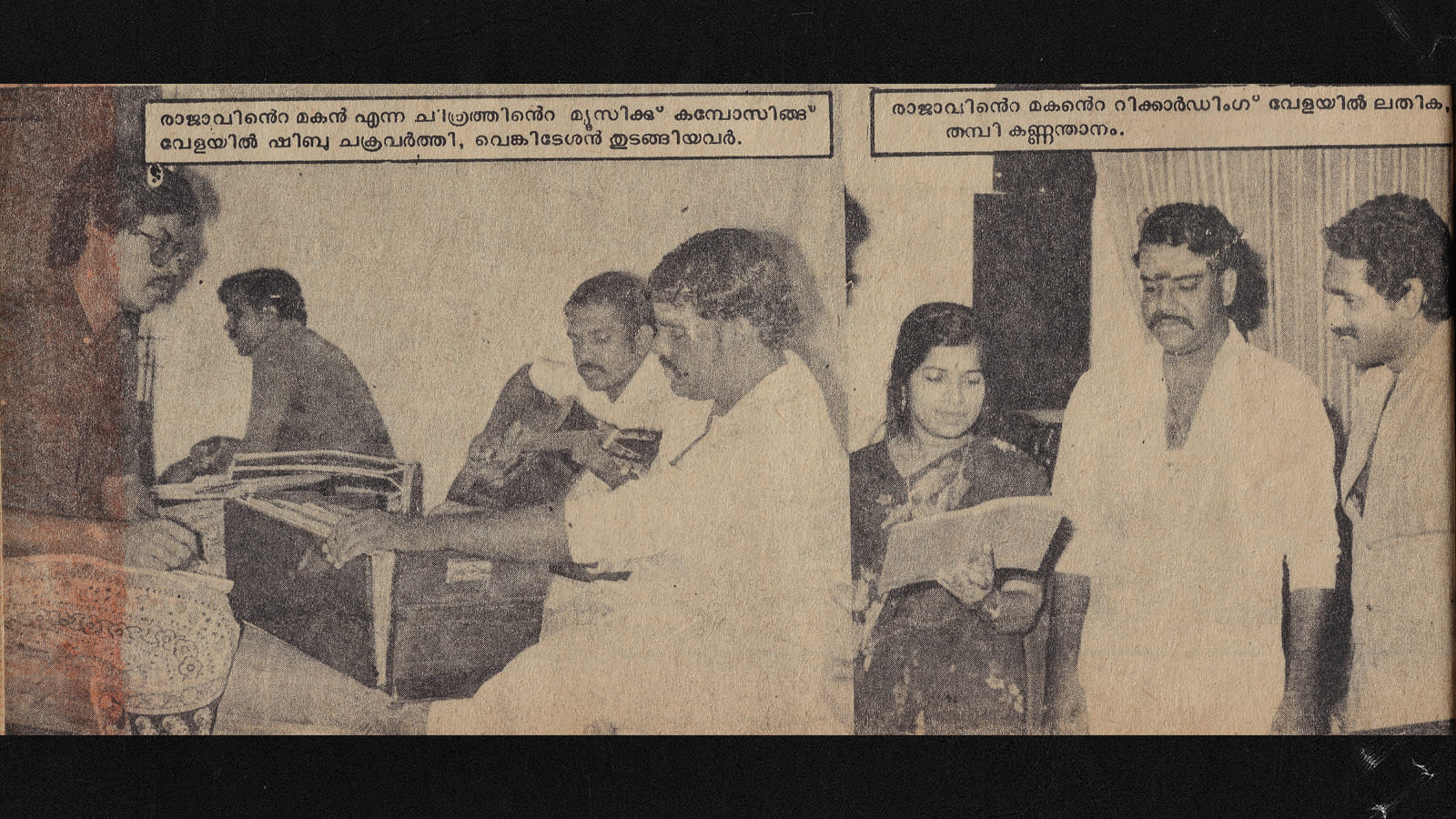 എറണാകുളത്തെ കൽപക ഹോട്ടലിലെ നാനൂറ്ററ്റി എട്ടാംനമ്പർ മുറി. അവിടെ രാജാവിന്റെ മകൻ എന്ന ചിത്രത്തിന്റെ മ്യൂസിക് കമ്പോസിങ്ങ് നടക്കുകയാണ്. ഷിബു ചക്രവർത്തി എഴുതിയ കാവ്യസുന്ദരമായ ഗാനങ്ങൾക്ക് വെങ്കിടേശൻ എന്ന പുതിയ സംഗീതസംവിധായകൻ സംഗീതം പകരുന്നു. സംവിധായകനും ഗാനരചയിതാവും സംഗീതത്തിന്റെ താളലയത്തിൽ ലയിച്ചു ചേർന്നു.