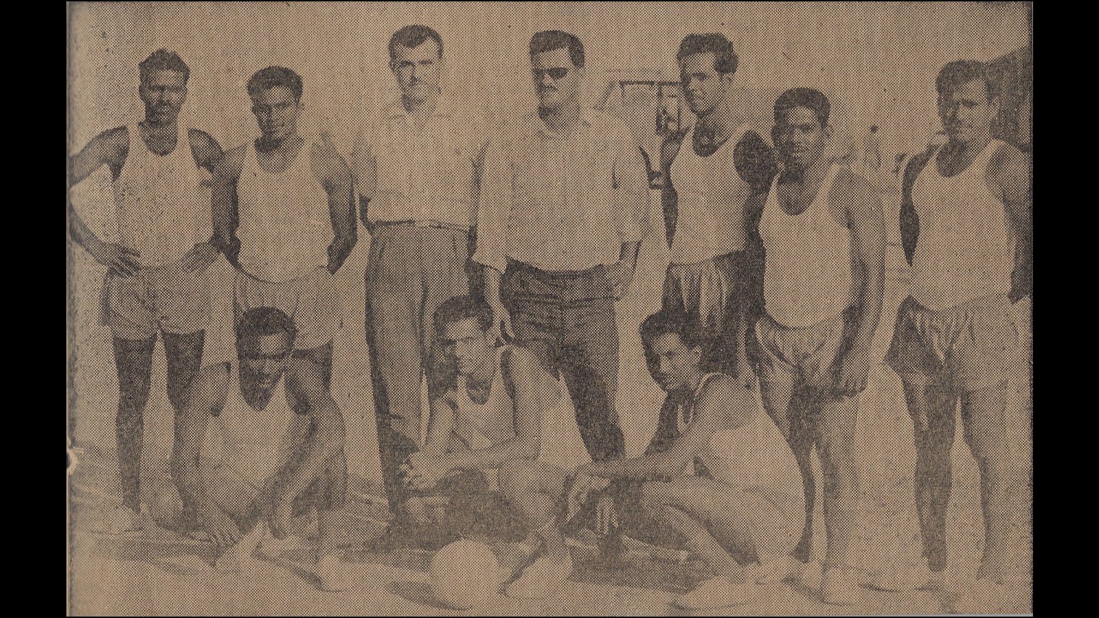 എയർപോർട്ട് ഫയർ സർവീസ് വോളിബോൾ ടീം. എല്ലാം മലയാളികളാണ്. നടുവിൽ ഇരിക്കുന്നത് ക്യാപ്റ്റൻ എം.എ. കരീം